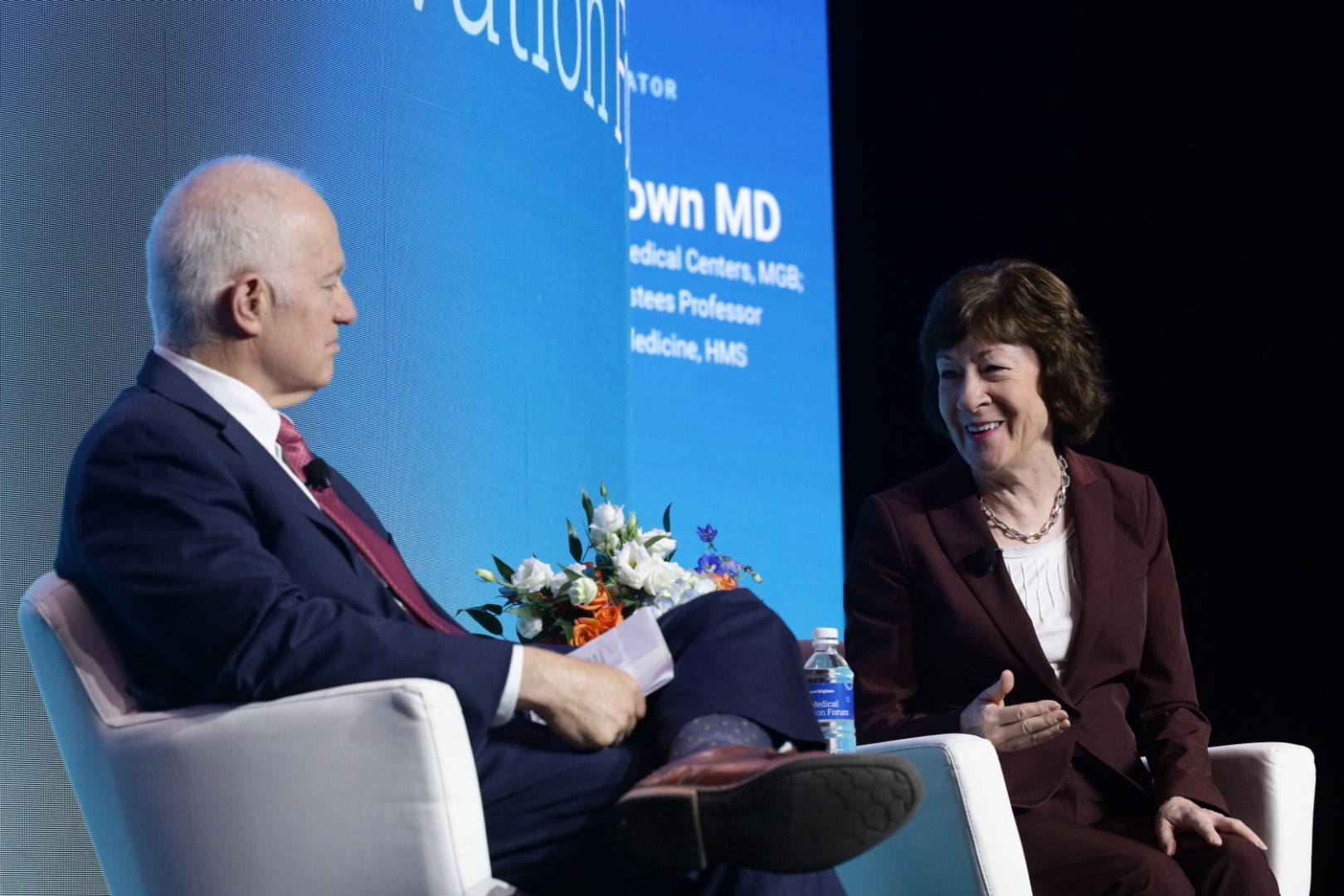 Everett, MA – Today, U.S. Senator Susan Collins spoke at the 11th annual World Medical Innovation Forum hosted by Mass General Brigham. Senator Collins was the featured guest for a fireside chat hosted by David Brown, MD, the President of Academic Medical Centers at Mass General Brigham. The World Medical Innovation Forum welcomes thousands of representatives from more than 650 health care, biotech, investment, and government organizations.