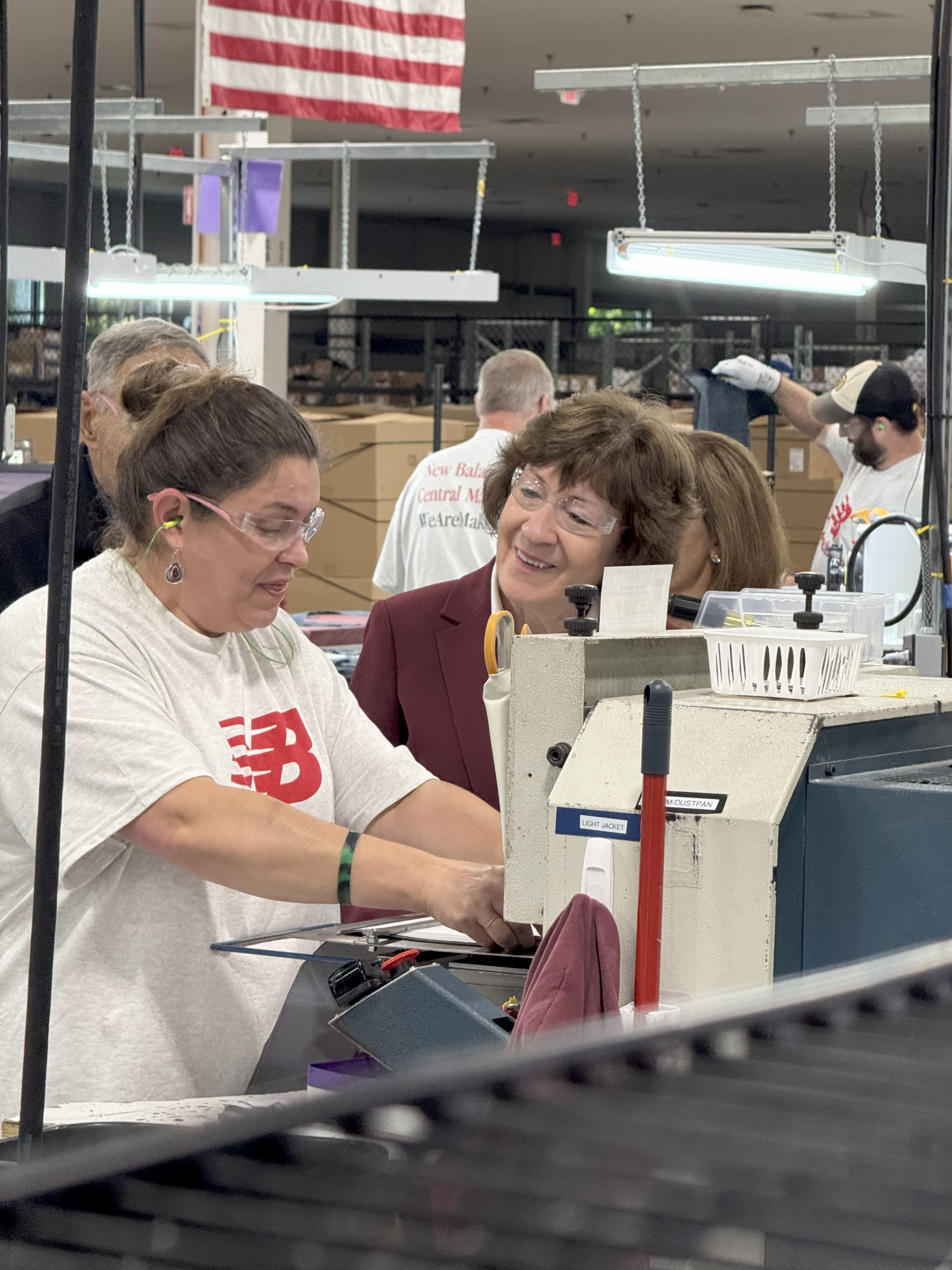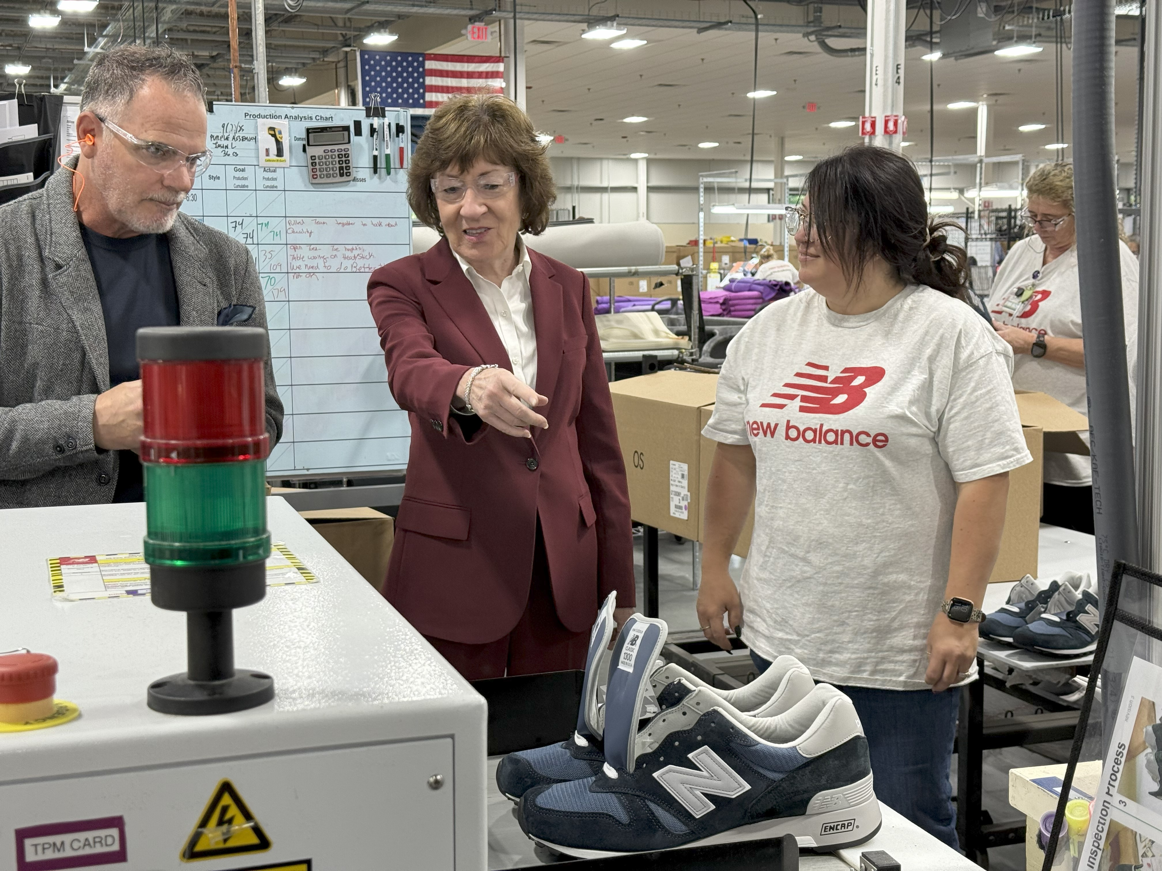 Skowhegan, ME – Today, U.S. Senator Susan Collins delivered remarks and toured the newly opened New Balance Central Maine factory expansion in Skowhegan. Federal, state, and local officials were in attendance along with hundreds of New Balance employees to celebrate the completion of a $65 million expansion that will create 200 new jobs and double the production capacity of the facility. Senator Collins previously took part in the groundbreaking for the expansion in 2023.