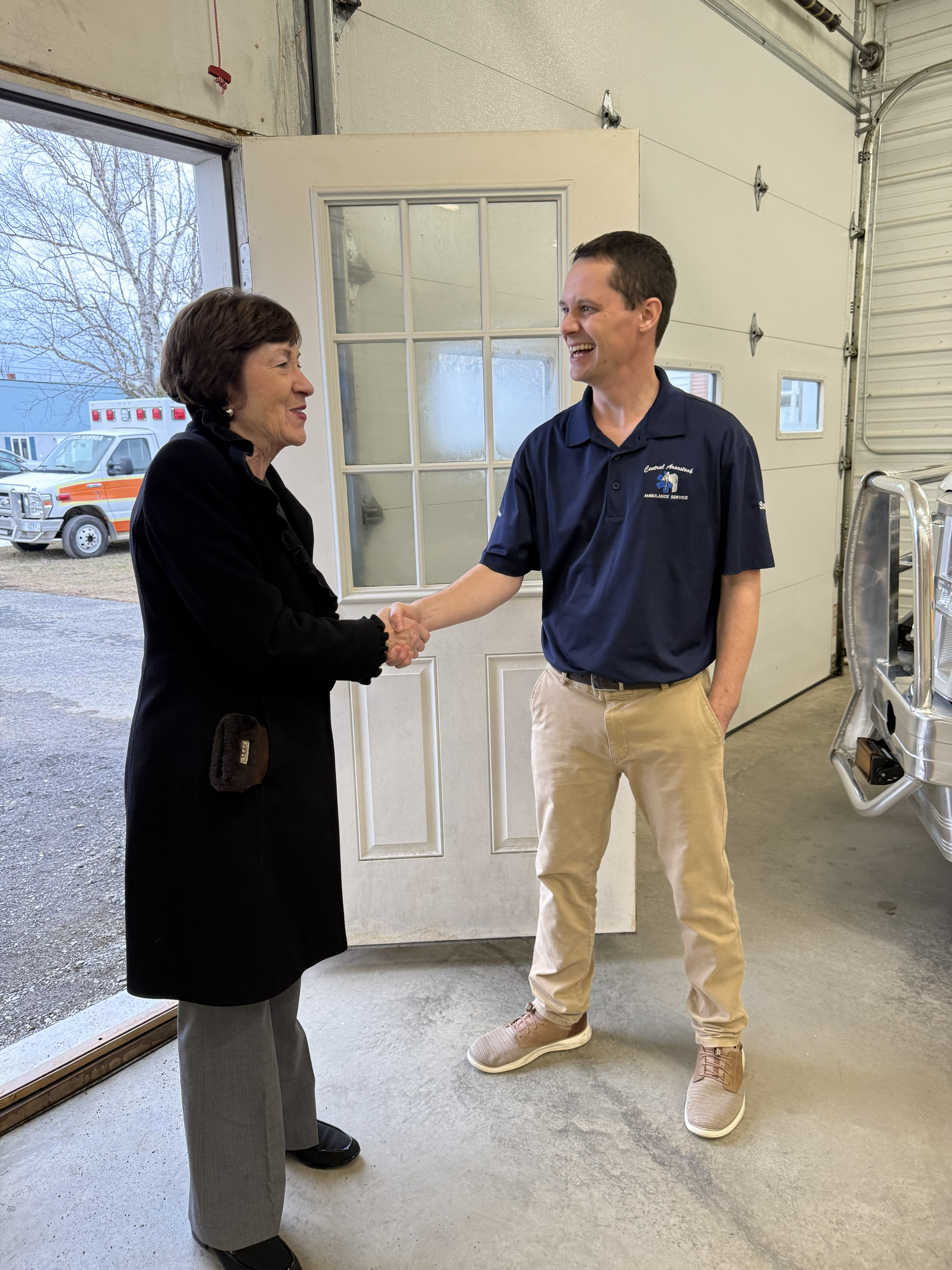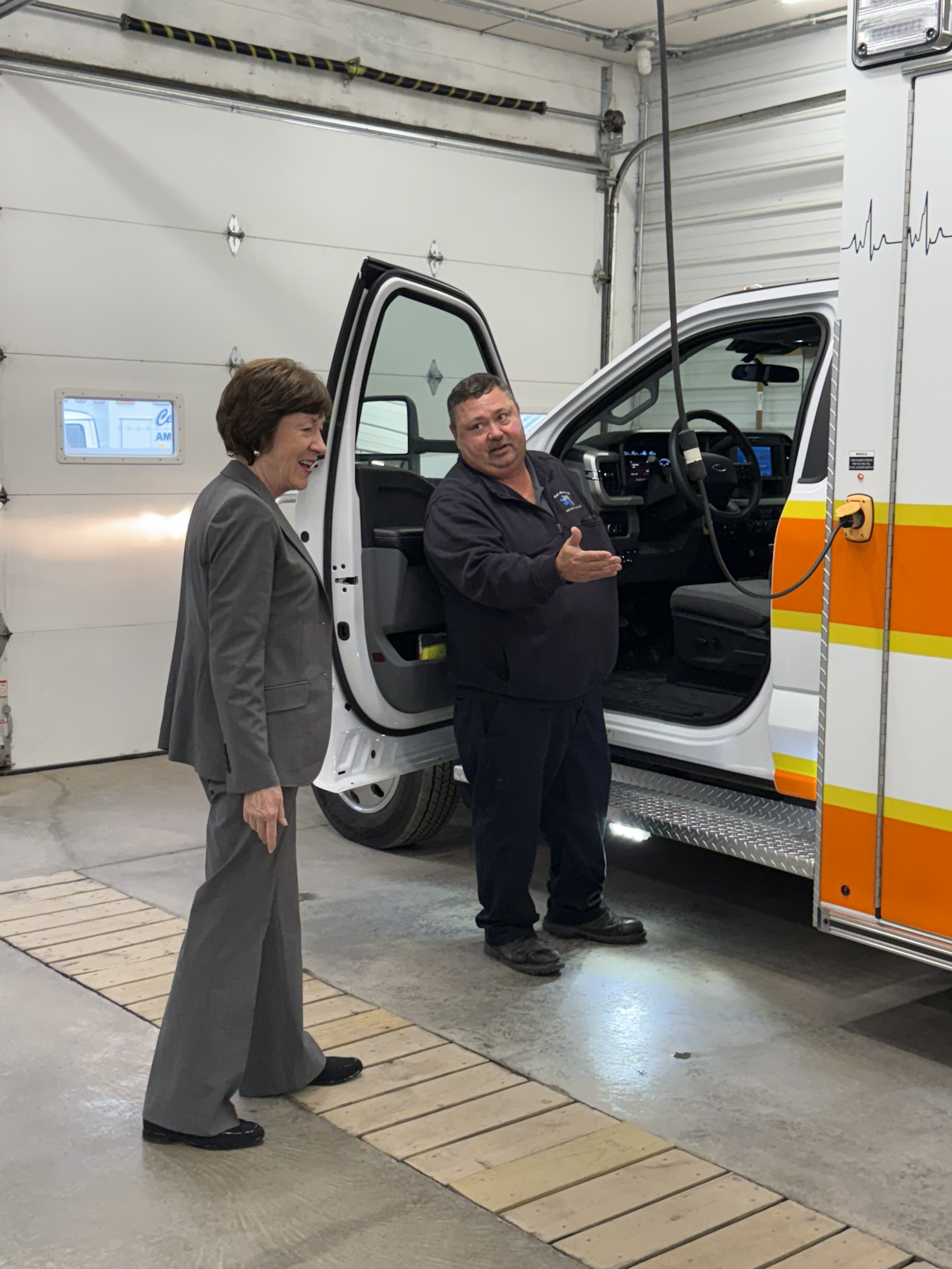 Blaine, ME – Today, U.S. Senator Susan Collins visited the Central Aroostook Ambulance Service (CAAS) in Blaine to meet with the crew, board members, and local town managers, and to see the new ambulance CAAS purchased with the support of $454,000 that Senator Collins secured through Fiscal Year 2023 appropriations legislation.